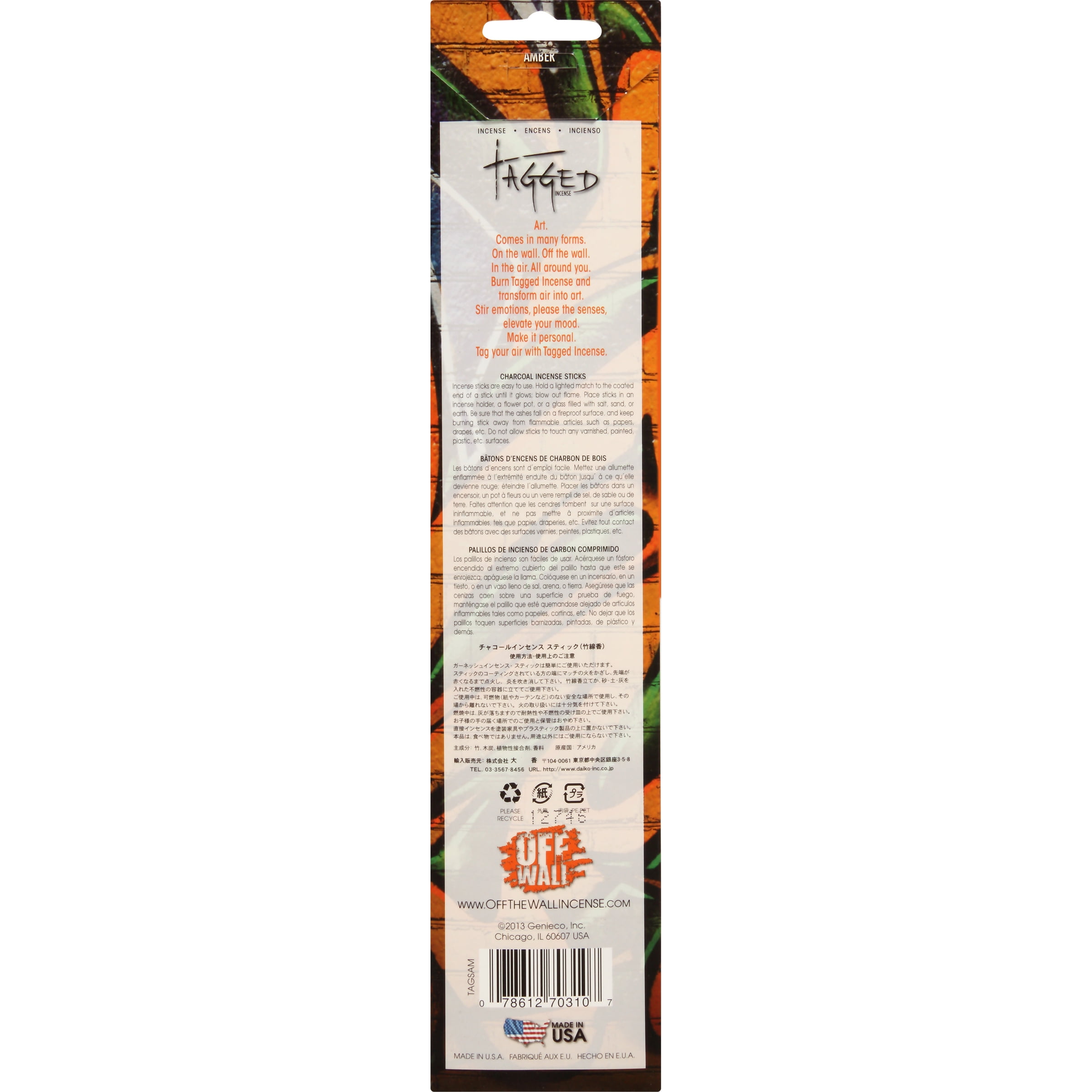 Off The Wall Tagged Amber Incense Sticks 20 Ct Carded Pack Walmart Com
